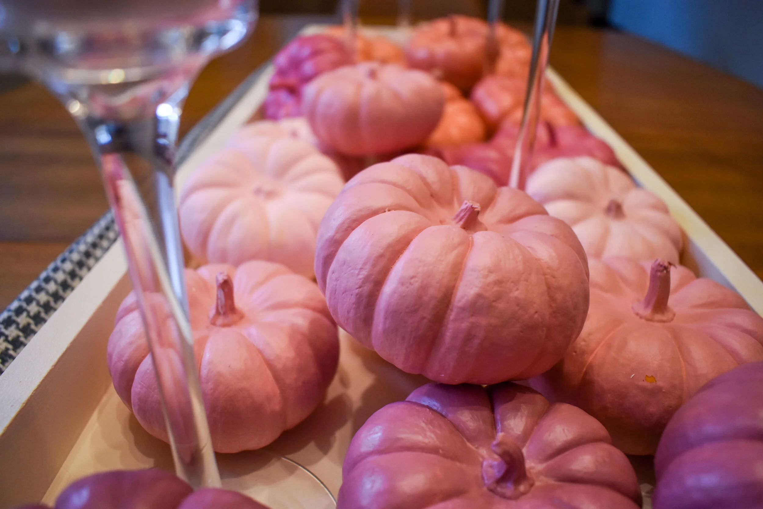 I went thrifting with a mission to find something to hold all of these pumpkins. I was about to settle with a mirror when I saw this awful movie-inspired wall hanging. I turned it over, painted the inside and sides and viola - a perfect sized wooden box. For only $4.99 I have this re-usable centerpiece box. I’m already brainstorming ideas for a Nightmare Before Christmas theme for the holidays. Ugh, can you imagine? I can. I’m pretty excited.